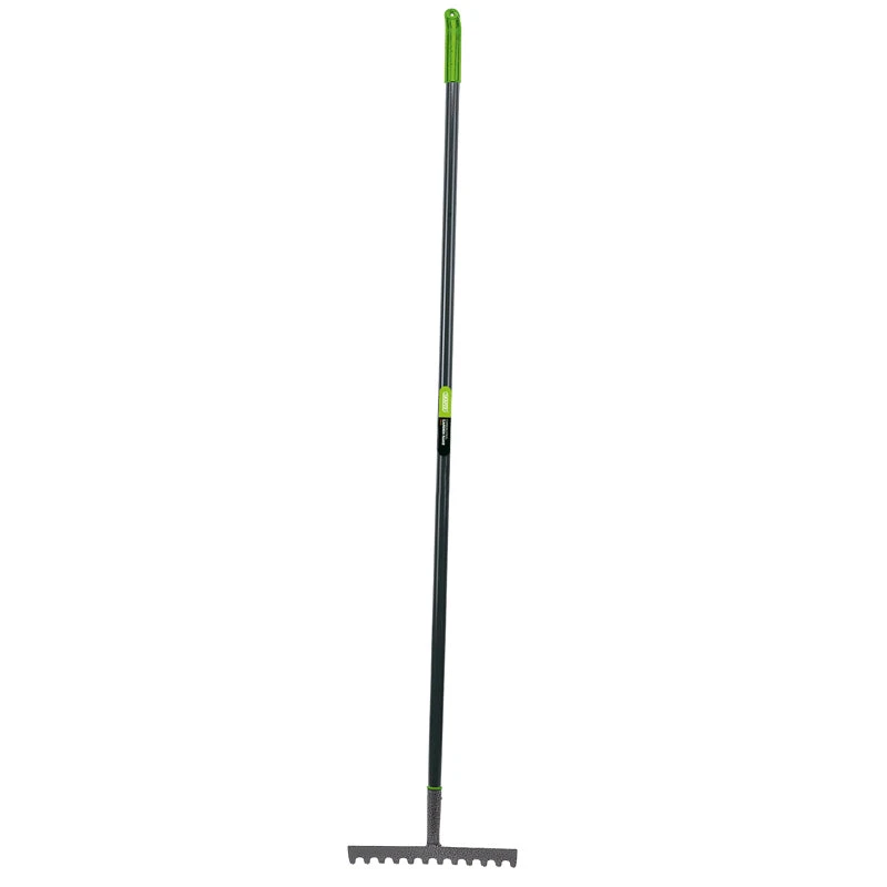 Twelve tooth head with epoxy coated finish. Head securely fixed to tubular steel handle. With black plastic hand grip with hang hole. Sold loose.