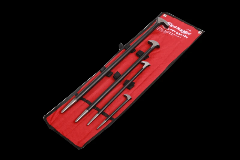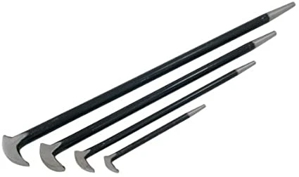 4pc Heel / Roll Head Pry Bar Set Heat Treated Drop Forged Steel Pointed Head Tapered Design for easy alignment Slipper Foot for extra Leverage Sizes – 150 x 8mm / 300 x 10mm / 400 x 14mm / 500 x 16mm