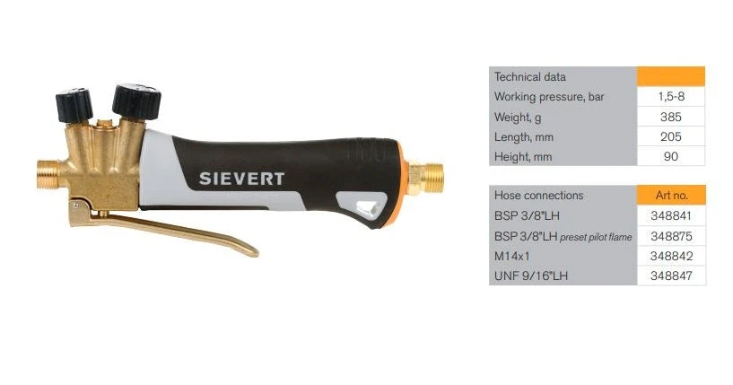Product illustration sheet Sievert Pro 88 propane/butane torch – handle only