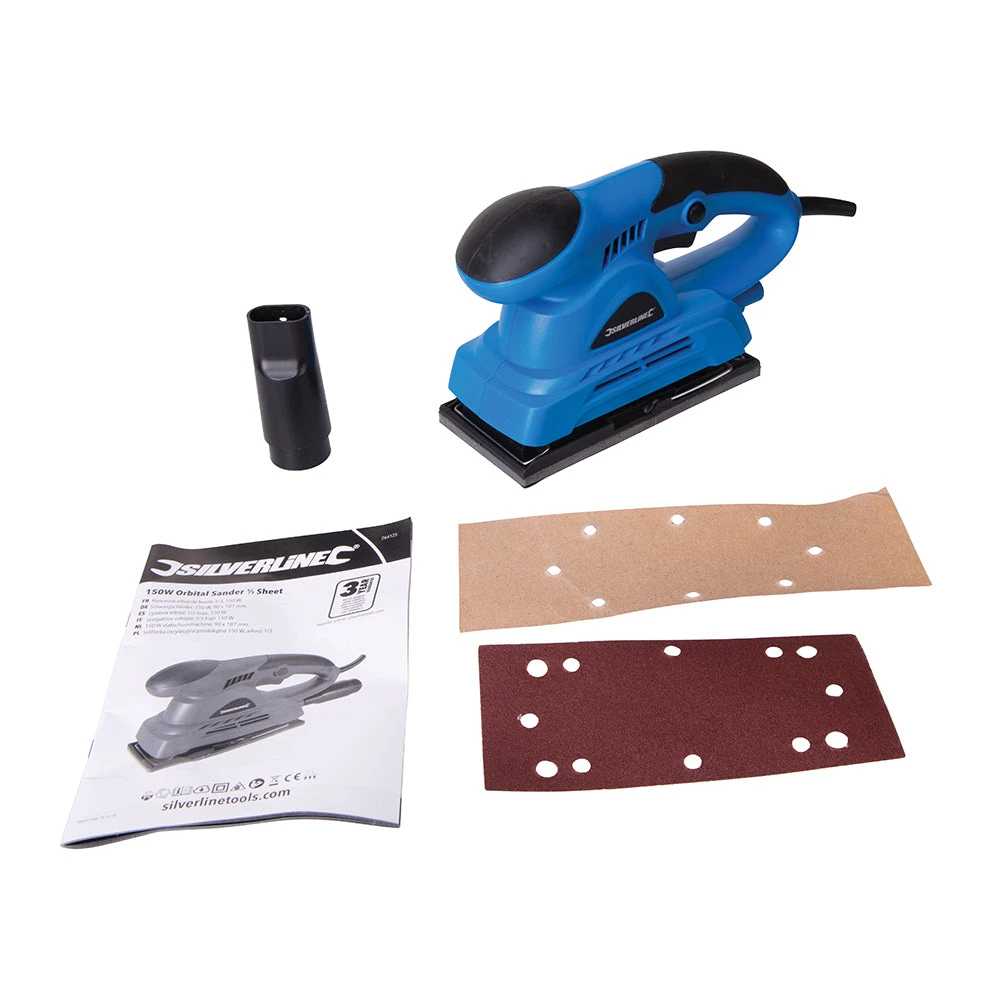 Ideal for preparing doors and windows for painting, or for fine sanding of walls and other flat surfaces. Ergonomically designed contoured main handle with large trigger switch for smooth operation, lock-on button and front handle make this tool easy to operate from any angle. Solid 90 x 187mm quick change hook and loop aluminium base with lever attachment for conventional sanding sheets. Sheet size 93 x 190mm (hook and loop), 95 x 230mm (clamped). Dust extraction port.