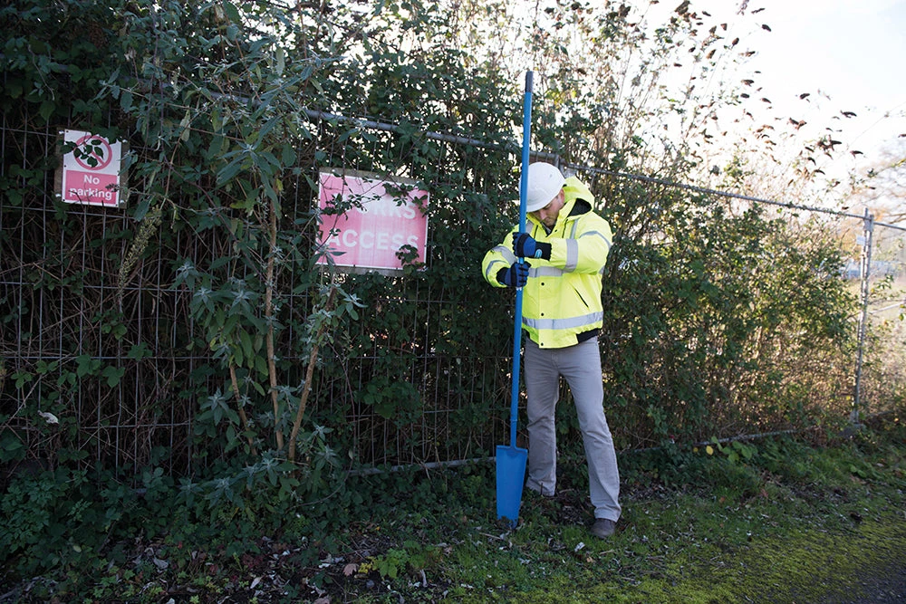 Hardened and tempered, single-piece, forged steel head and socket. Extra-long, tubular steel shaft. Powder-coated finish. Long, narrow, dished blade. For digging drain and pipe channels, trenches and post holes. Blade length 400mm. Blade width top 160mm and bottom 95mm.