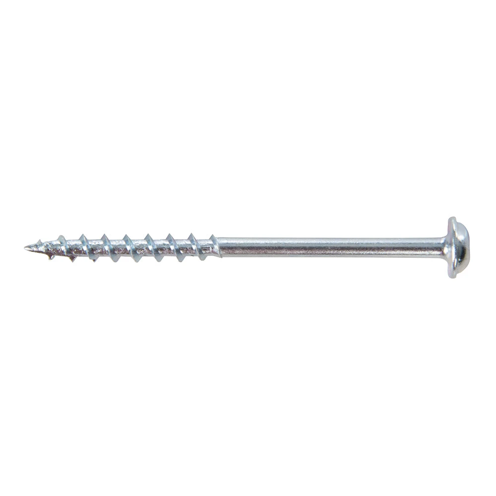 Zinc-plated screws suitable for a wide variety of internal construction projects. Rust-resistant against limited exposure. Compatible with major brands of Pocket Hole Jig. Coarse thread.